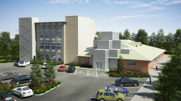 Some of the green features will include a high efficiency thermal envelope, geothermal heating and cooling, management of construction waste and building materials, water conservation, indoor air quality management, and rainwater harvesting. In addition, the new center is a classic example of adaptive reuse of an existing building on a previously developed site. The building will have transportation ties to the community, Long Island and New York City with its bus, rail and van transport services. The existing parking will be used as a solar canopy array to collect enough energy to run the building, without adding any impervious surfaces to the site.